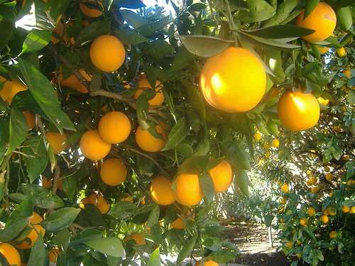 Apfelsinenbäume vermischt; auf die Blüte der Apfelsinen geht die touristische Bezeichnung dieser Gegend von
